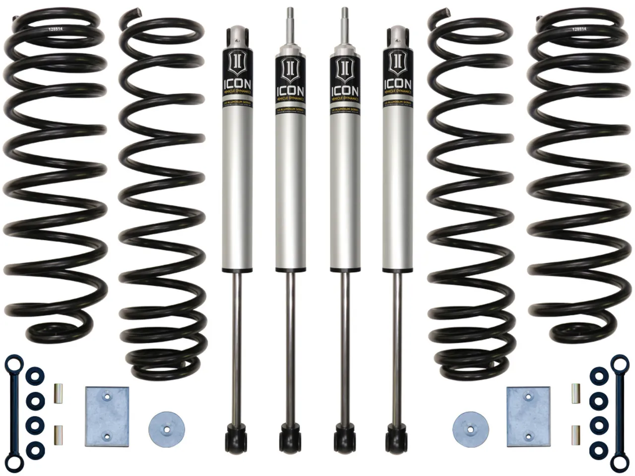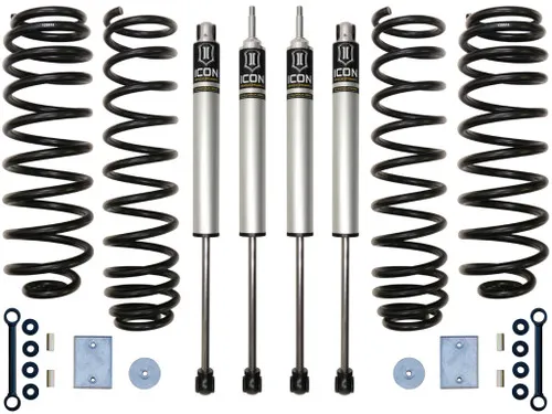 The ICON Vehicle Dynamics 3" Lift Suspension System is designed for Jeep JK owner's demanding the ultimate in performance and ride quality, without the larger stance you find in bigger lift systems on today's market. ICON's Jeep Wrangler JK 3" lift system is engineered with front and rear dual rate progressive wound springs which is the foundation for on and off road performance and suspension articulation. The dual rate design gives you a softer initial rate for superb on road comfort and a firmer secondary rate that increases during compression for excellent bottom out control. ICON V.S. 2.0 Aluminum Series shocks add the finishing touch with OE mounting, aircraft grade components, and vehicle specific valving. Together the combination of ICON dual rate coils and V.S. 2.0 Aluminum Series shocks adds 30% more wheel travel over stock, helping you rock crawl safer or soak up larger terrain at higher speeds keeping those wheels on the ground. This ICON 3" JK lift system is designed from the ground up to give the 07-18 Jeep Wrangler JK's the best performance, suspension handling / ride quality, and clearance for 33" tall tires (35" tall with installation of aftermarket high-clearance fenders).