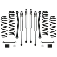 The ICON Vehicle Dynamics Stage 2 2.5" Suspension System for the 2018-UP Jeep Wrangler JL is designed for the driver looking to drastically improve the performance and ride quality of their vehicle. This Stage 2 system includes 2.5" lift dual rate coil springs, Vehicle Specific 2.0 Aluminum Series shocks, tubular steel front lower links, bump stop spacers, sway bar links, and all necessary hardware to complete the installation. With this combination of components, ICON was able to increase wheel travel numbers by over 30% (3" front, 2" rear), redefining the potential of the 2018-UP JL. The front lower links included with this system are constructed from thick wall steel tubing, provide increased castor numbers, and feature dual durometer bushings for noise free operation, maximum articulation, and minimal bind. The Stage 2 system allows for fitment of 35" tires when used with ICON's recommended wheel specifications. For users looking to install 37" tires, an optional bump stop spacer kit (PN: 22029) is available.
