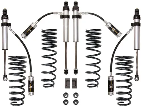 After an in-depth R&D process, ICON engineers have developed a 3 suspension system for the 80 Series that is aimed to improve on-road handling characteristics while also maximizing the Land Cruisers off-road potential. This Stage 2 system includes ICON-designed dual rate coil springs, caster correction bushings, sway bar relocation components, all bracketry and hardware required for install, and ICON Vehicle Dynamics 2.5 Series remote reservoir shocks that feature a vehicle specific valving for optimized ride quality and balanced damping front to rear. The 2.5" remote reservoir shocks front and rear ensure optimum performance by increasing the duration of consistent damping regardless of situation, keeping the shocks at a cooler operating temperature during extended off-road use. This ICON Stage 2 System is the perfect suspension system for drivers seeking a quality on-road ride with outstanding off-road performance under extreme use.