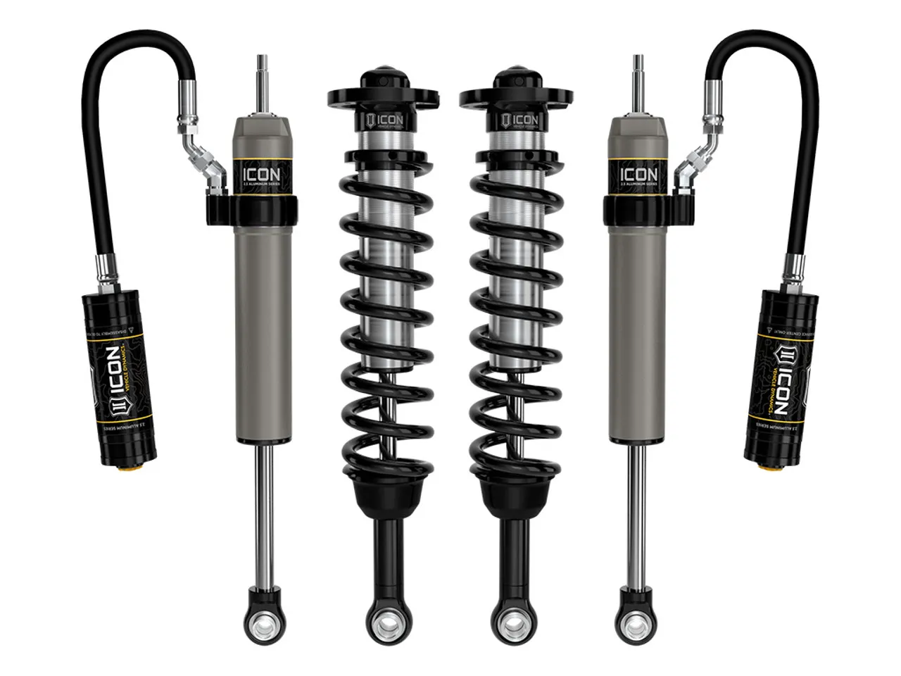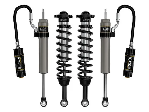 Rounding out the Stage 1 suspension system are 2.5 Aluminum Series rear remote reservoir shocks specially tailored for the 2022-2023 Land Cruiser 300 Series. The 2.5 Aluminum Series shocks larger diameter offers outstanding performance off-road and a smooth ride on the street. Remote reservoirs ensure optimum performance by increasing the duration of consistent damping regardless of situation, keeping the shocks at a cooler operating temperature during heavy use. They also feature a unique internal Bump Zone that when used creates an additional 20% of damping force to help better control hard bottom outs. Their pairing with the ICON V.S. 2.5 Series front coilovers results in balanced vehicle control from front to rear and an excellent overall driving experience for your Land Cruiser.