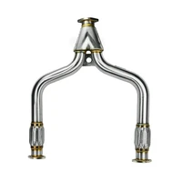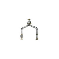 The ISR Performance Q50 / Q60 / RZ34 3.0T Y-pipe utilizes 2.75" stainless steel piping along with bellowed flex sections running from the 2 bolt catalytic converter flanges back to the high performance velocity merge. The Y pipe then steps to 3" stainless piping coming out of the velocity merge to the rear 3" exhaust flange. The Y pipe also features an integrated dimpled gusset plate tying the two individual runners together for increased strength and rigidity.