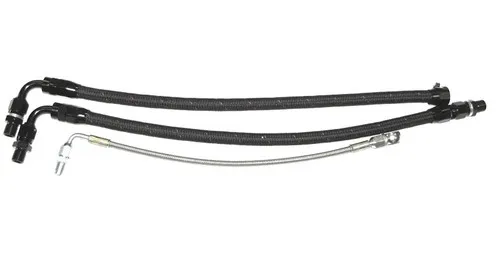ISR Steel braided turbo lines are direct replacement of factory turbo hardlines found in the S14, and S15 SR20DET engines. They are built utilizing high quality aircraft fittings and come with new aluminum washers.