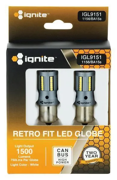 12V BA15s Base, white, canbus 1500 Lumens (2 Pack)