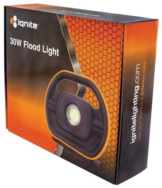 30W COB, flood beam, 3,000 lumens high intensity, 1,000 lumens low intensity, stepless dimmer