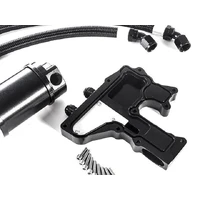 This kit uses the Integrated Engineering billet recirculating catch can, which features our state-of-the-art baffle system to catch the oil mist and not let it pass back into the turbo inlet. This flawless catch can is fully serviceable, easily disassembling if needed. Draining the catch can is simple with the use of the included T handle drain valve, no tools necessary. This beautiful piece is finished with a bright black anodize finish, which maintains a stealthy appearance while looking great in your engine bay.