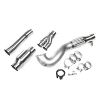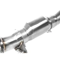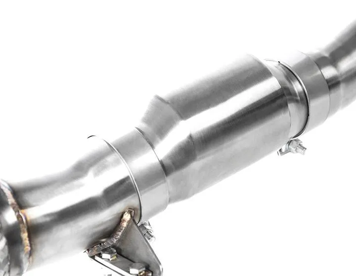 This downpipe kit bolts-on directly to either an IE Catback or stock catback (with adapter) with no permanent modifications or alterations to the vehicle. The removal of the factory downpipe is a very long process and is only recommended to be performed by a professional. DIY is not recommended for most on this product.