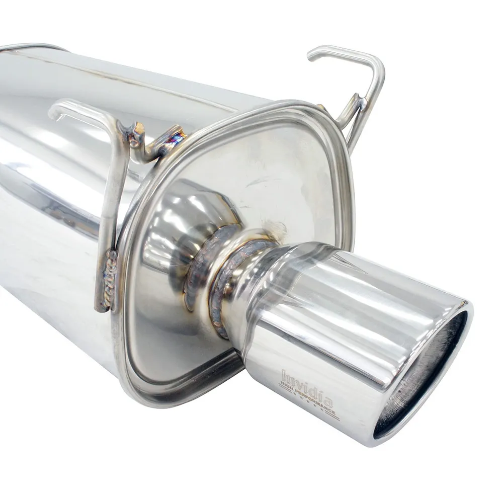 Invidia's Q300 tuned muffler systems provide a quieter exhaust sound than both the R400 and N1 Invidia Exhausts. While still keeping volumes in check, their high flow design ensures efficient exhaust flow for optimum engine performance and prevents sacrificing any increases to power or torque. The Q300 mufflers offer a rich, deep, sporty exhaust note which enhances the natural tone of your car's engine without introducing any unwanted sound qualities or excessive volume. The Q300 exhaust system utilises specially sized resonators and muffler baffles to maintain power output while still producing a deep and mellow exhaust tone