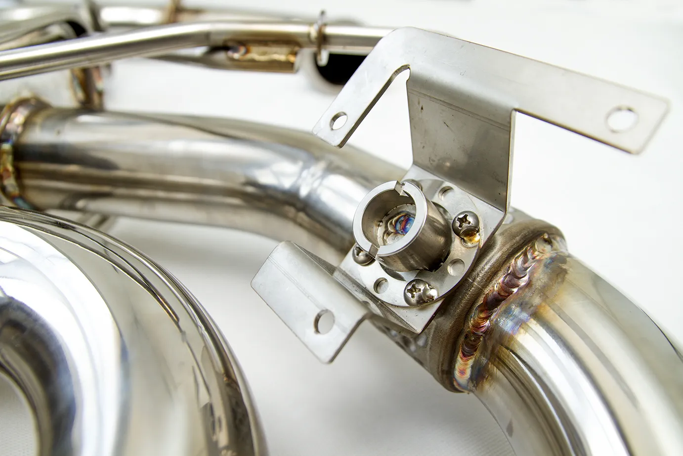 First, a 3D scan is take of the underside of the car to ensure fitment is 100% correct. Next, grade 304 Stainless Steel (with the exception of their titanium systems of course) is selected for all piping, mufflers and flanges. This particular grade is chosen for its strength, durability (ability to withstand the elements),and its ability to be formed and welded with relative consistency and ease. Cast flanges are then used which ensures 100% correct fitment every time, no leaks or additional stress points, and long lasting strength.