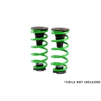The adjustable threaded body of the EDP-coated steel base bolts securely into place on top of the rear axle. Once secured, just spin the drop-forged aluminum spring seat down onto the adjustable threaded base and set it to your desired ride height. These allow for over 1 inch of adjustment. Also don’t forget, these Adjustable Airbag Delete Kits are great for eliminating the dreaded “Left Hand Lean” found on USDM vehicles.