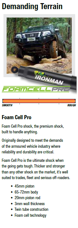 FOAM CELL TECHNOLOGY - Micro-Cellular closed cell foam insert maximises cooling efficiency by occupying less internal space than gas within a pressurised shock absorber. Greater oil capacity and more surface area maintains lower operating temperatures. 40-45mm