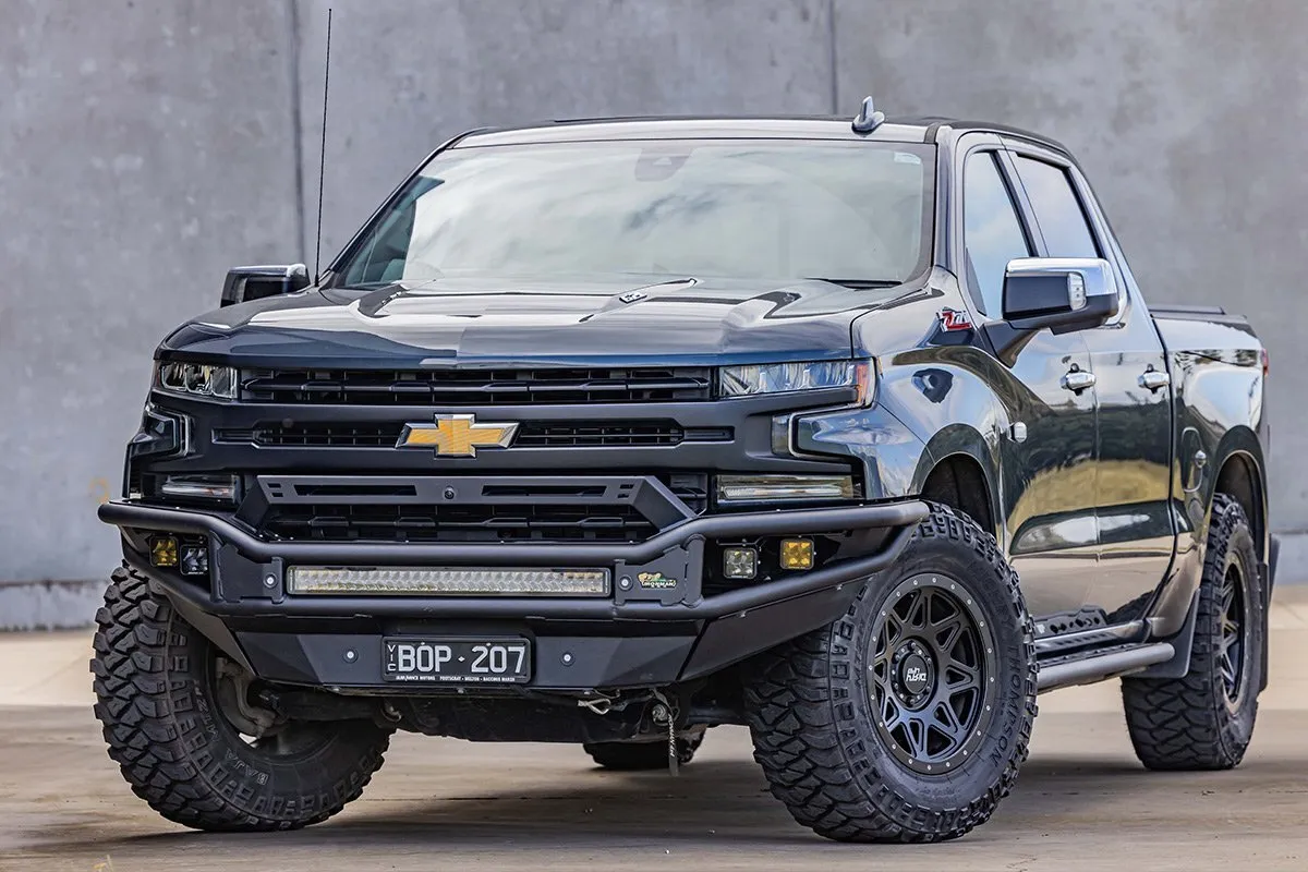 The Raid Bull Bar to suit Chevrolet Silverado 1500 has a sleek low-profile design and offers robust steel strength with an integrated steel front skid plate. The list of standard inclusions continues with a chassis-mounted winch cradle, provision for a double row 32” lightbar and up to 4 cube lights means this bar is ready for your next off-road adventure.