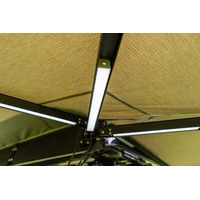 Designed to integrate into the C-channel roof frame of the XTR range, a clever 3-piece LED light kit is available for semi-permanent installation via 3M adhesive strips. The 3-piece kit spanned across three roof arms provides a great spread of workable light with a combined output of 830 lumens and three colour settings: cool, bright white and yellow – perfect to keep the mozzies away. The LED light bar kit includes the 3 light bars, an inline controller and a 12V DC power cable.