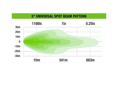 Ironman 4x4’s 5" Universal LED Light with Side Shooters are designed and engineered to meet the demanding conditions of off road and on road travel, providing 140 degrees of light.
