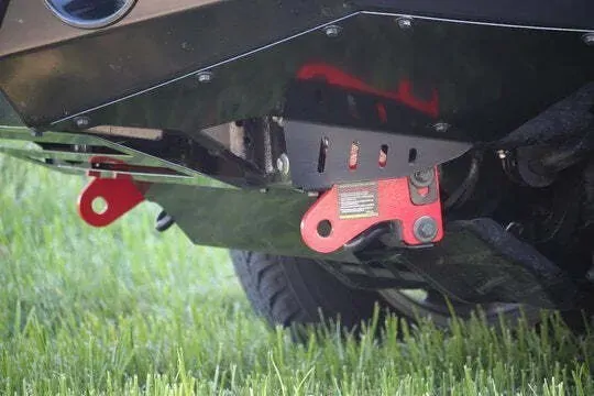 Powder-coated red, the Rated Recovery Points are easy to identify, even when covered in dirt and mud.