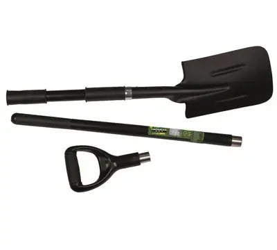 Designed in Australia, the high quality Combo Shovel is built strong for hard work and consists of a heat treated steel blade, multi-core, steel reinforced PVC handle, heavy duty "D" handle and 304 Stainless Steel joining sleeves. It has become very popular with four wheel drivers who at times may require either a long handled shovel or a short spade but don't want to carry two seperate items, and is easy to carry in any vehicle - even soft roaders.