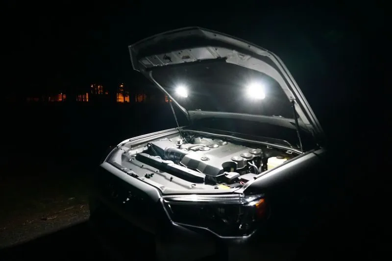 FEATURES-Universal under hood mounting package included-One Cyclone puts out 516 RAW lumens of light for vibrant visibility-Package includes all necessary wiring-IP68 rated waterproof sealing-Cyclone LED lights feature extremely low amp draw and high output in a compact packageLIGHT PERFORMANCE-Raw lumens: 516 lmSPECIFICATIONS-Wattage: 5W-Voltage: 6V-16V-IP Rating: IP68-Product Dimensions: Diameter - 2.20 x Depth - 0.53" PARTS INCLUDED WITH CYCLONE UNIVERSAL LIGHTING KITS-(1) or (2) Cyclone LED lights-Wiring, weatherproof switch, and mounting hardwarePERFORMANCE OUTPUT AND CLARITYThe 5W Cyclone LED light uses a multi-functional compact design delivering 516 lumens of LED output. These extremely bright Cyclone kits are perfect for illuminating your engine bay and any hard to see areas under the hood. UNIVERSAL MOUNTING OPTIONSCyclone LED lights feature a die-cast aluminum housing with a centrally located universal mounting hole. These Cyclone kits come with the necessary hardware to attach your Cyclone LED light(s) under the hood of your vehicle with minimal installation time, effort or fuss.FLOOD BEAM PATTERNThe Cyclone LED comes in a flood beam pattern to provide a large pattern of light by utilizing an infinite vertical and horizontal beam pattern. This delivers ample illumination over short distances.DESIGNED FOR DURABILITYOff-road race tested, the Cyclone LED was designed to handle the harshest environments. Featuring an IP68 rated housing, the Cyclone LED kit is resistant to moisture and dust.