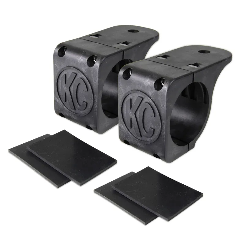 FEATURES-2 x 2-Piece Black Tube Clamp Mounting Bracket-Fits 1-3/4in. to 2in. Diameter Round Light Bars-Super Strong Glass Injected Nylon Composite-Rubber Adjustment Shims for easy and Accurate Fitment-Designed to Universally Mount Any KC HiLiTES Light EASY INSTALL AND FITMENTEasily add auxiliary lighting to your vehicle with additional Light Tabs. Designed to fit 1.75in. to 2in. Diameters; our Universal Tube Clamp Mounts work with most popular lights to your vehicle; creating extra light tabs for attaching additional light to your off road vehicle. Attach on almost any piece of tubular metal; from bumpers and grille guards to light bars and roof racks; mounting lights has never been easier. HIGH GRADE CONSTRUCTION AND DURABILITYForget rust-prone steel; KC HiLiTES has constructed these heavy duty Tube Clamp Mounts using glass filled Nylon composite material designed to be impact resistant and waterproof. Ready to take on the harshest terrains and most grueling conditions imaginable. FINE TUNED LIGHT ADJUSTMENTEach Tube Clamp Mount comes complete with a pair rubber shims for a fine tune fitment of lights; securely attaching your lights with a range of adjustability for your lighting needs. Forget rust-prone steel; KC HiLiTES has constructed.