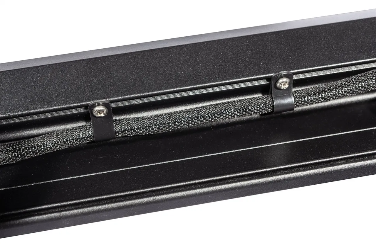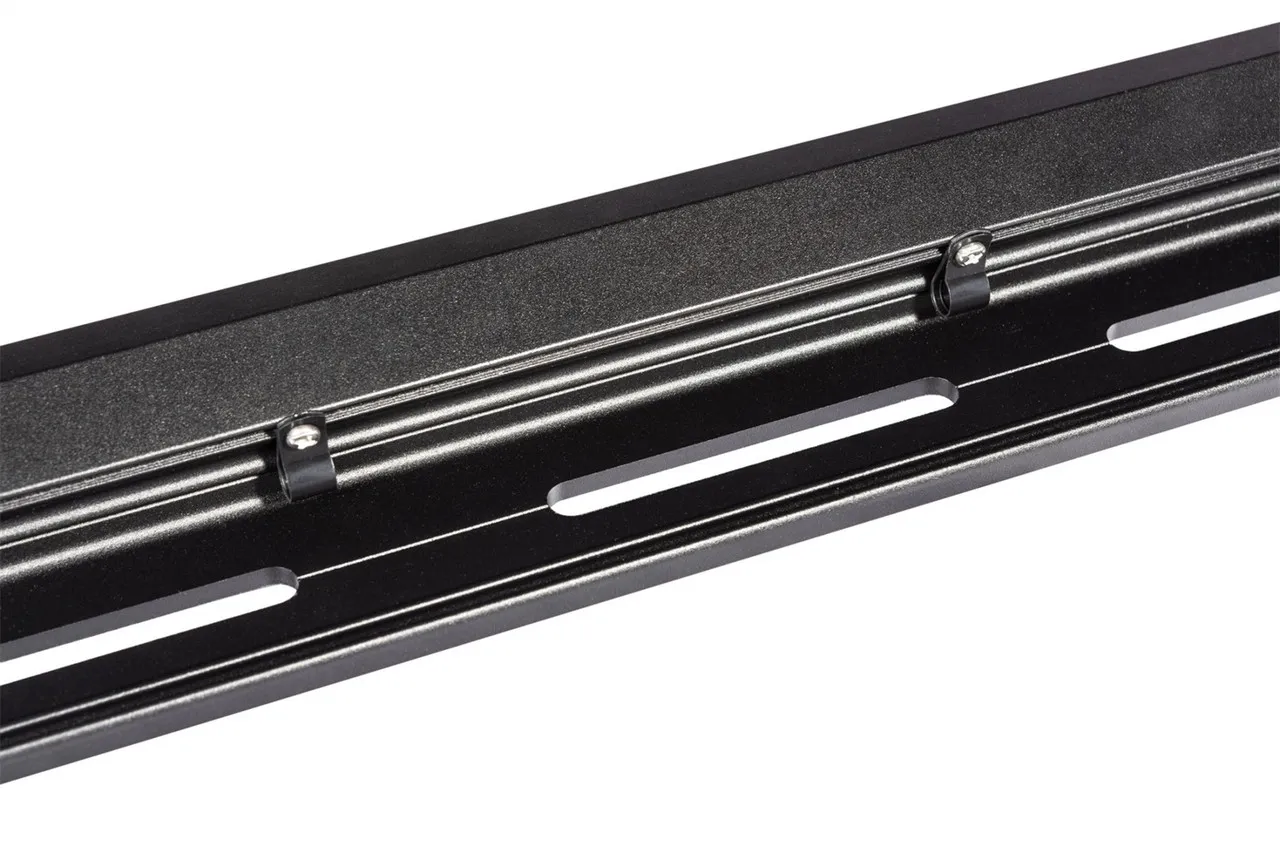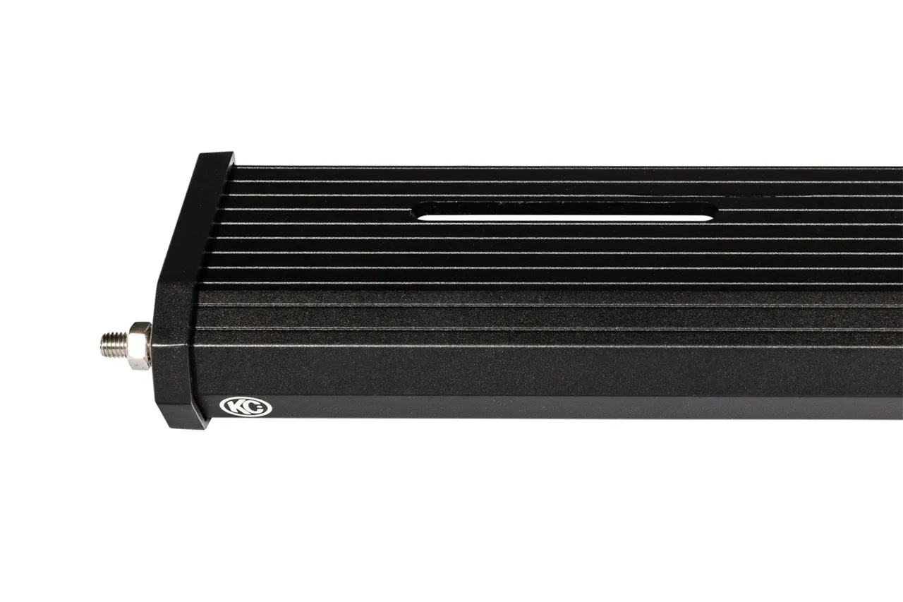 FEATURES-6063 T6 Extruded Aluminum Construction-Satin Black Powder Coat Finish-Low Profile Aerodynamic Design to Reduce Drag and Wind Noise-Can be Mounted Directly in Place of Any Standard 50in. Overhead LED Light Bar-Holds up to 9 4in. Lights using Pre-Configured Mounting Slots-Integrated Wire Management Using a Recessed Channel and R-Clips for a Clean InstallSPECIFICATIONS-Dimensions: H-1.911in. x D-3.605in. x W-51.39in.PARTS INCLUDED-(1) 50in. Extruded Aluminum Xross Bar Light Mount-(10) Wire Management R-ClipsSLOTTED MOUNTING HOLESWith pre-configured mounting holes; the Xross bar can securely hold anywhere from 2 to 9 lights with ease. Slotted holes allows for extra customization and to accommodate a variety of light sizes.INTEGRATED WIRE MANAGEMENTKC Xross bar features a recessed channel and series of R-Clips for an integrated wire management system. Simply attach your lights and run wiring underneath through the recessed channel for a quick; clean and easy install. No messy wires and zip ties here; KC s taken the headache out of wiring multiple lights to get you on the road quickly.DESIGN AND CONSTRUCTIONThe KC Xross Bar features a low profile aerodynamic design constructed from high quality 6063 T6 Extruded Aluminum in an attractive satin black powder coat finish. This makes the KC Xross Bar lighter than steel bar options on the market; while being highly durable with its resistance to corrosion and rust.