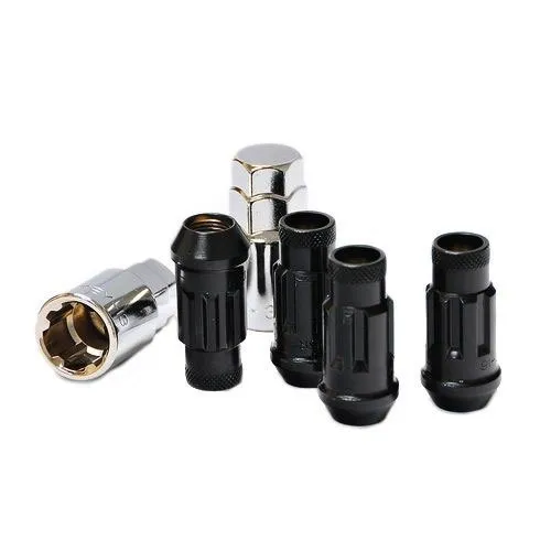 While the 17 Hex is unique, sometimes you need that extra bit of security to ensure you wheels stay on your car at all times. Wheel Mate Monster Lug Lock Set ensures that your wheels are secure while matching the good looks and quality of the Monster Lug. Made of the same Cold Forged Chrome Vanadium, these lock sets are OEM tough and race car proven, as it was derived by racing. The oversized 60 degree tapered seat ensures better contact on the wheel and the top knurl makes installation easier. The Lock Set is open-ended to accommodate extended wheel studs. Available in multiple colors and in 12×1.5 and 12×1.25 inch thread pitches, the Muteki SR48 Lock Set will keep your vehicle secure!