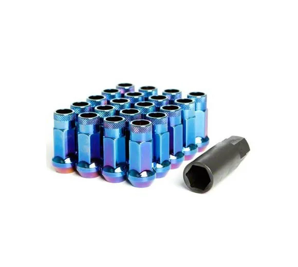 The OEM quality construction of the SR48 Lug comes from the use of Cold Forged Chrome Vanadium metal and oversized 60 degree cone seat for better contact on your wheels. The available colors of Titanium, Burned Blue, Pink, Chrome Neon, Red, Blue, and Black, give the SR48 the show car class looks your car requires.