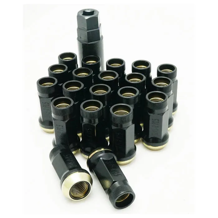 The OEM quality construction of the SR45R lug comes from the use of Cold Forged 50BV30 Steel construction and a oversized 60 degree cone seat for better contact on your wheels. Current available color is Black, Blue, Red, Yellow, Burned Blue Neon and Burned Titanium. Give your car the high end details it deserves with the all new Muteki SR45R lug nuts.