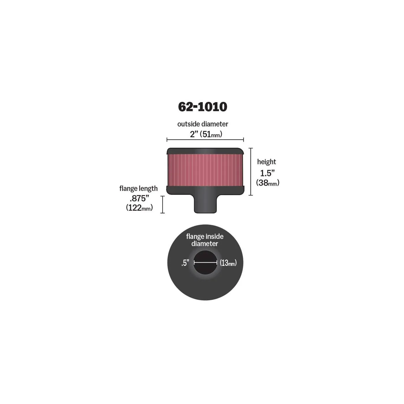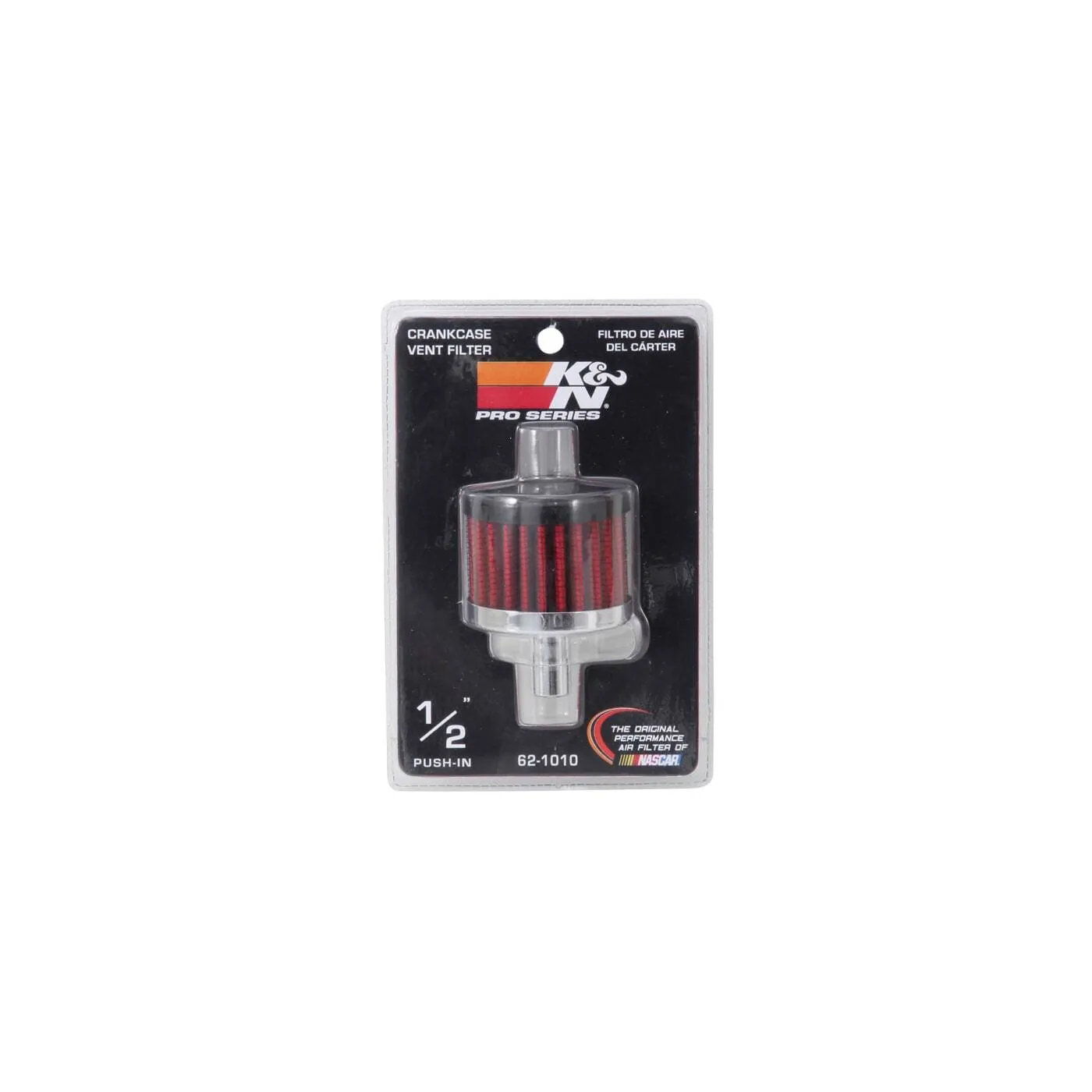 K&N crankcase vent filters are perfect for racing applications, vintage cars or individuals who want to add some aesthetics to their classic carbureted engine. The 62-1010 crankcase vent filter has a K&N embossed rubber top with a steel base. The 1/2 inch diameter zinc tube is designed to push in and clamp directly on to metal or plastic tubing where venting is needed. Constructed with a synthetic filter media it can be cleaned and reused repeatedly. Note: Legal in California only for racing vehicles which may never be used, registered, or licensed for use upon a highway. See knfilters.com for CARB status on each part for a specific vehicle.