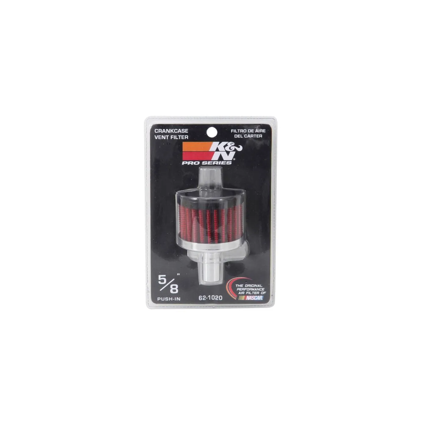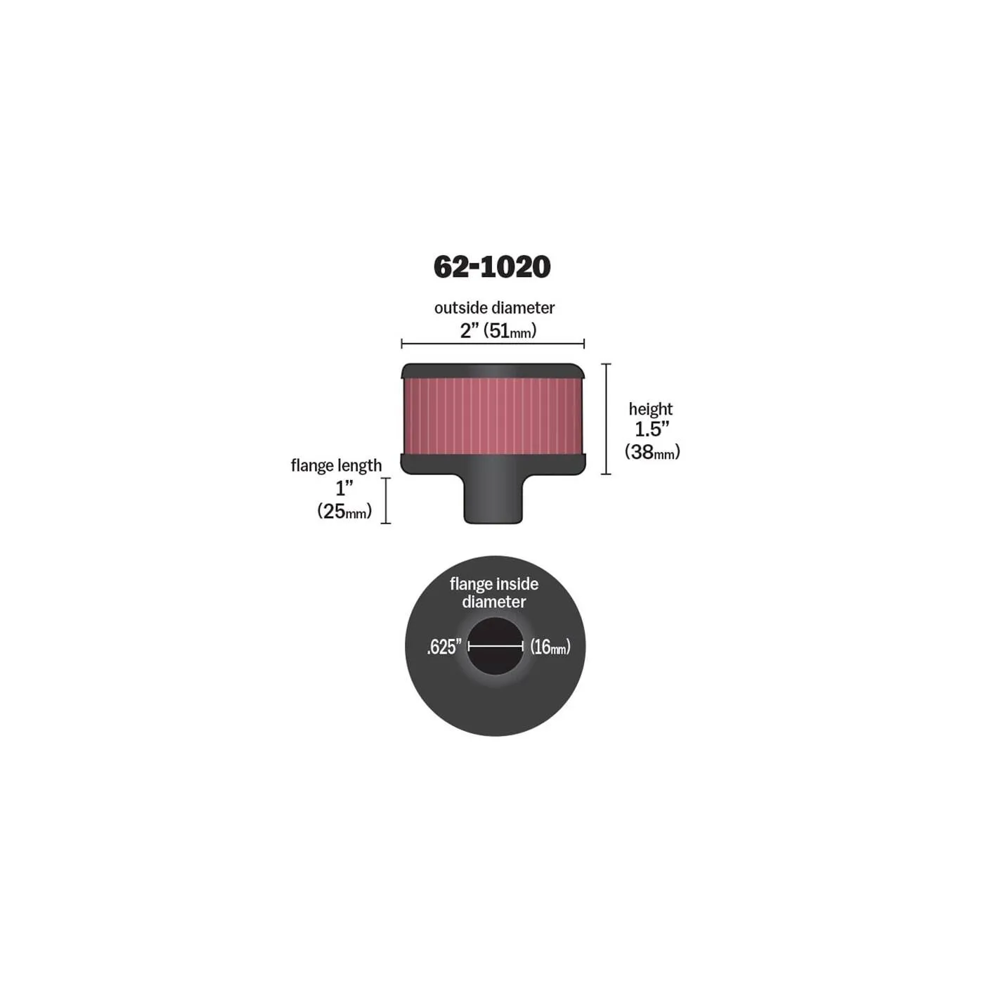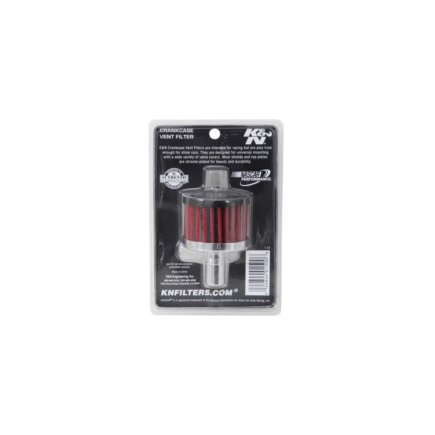 K&N crankcase vent filters are perfect for racing applications, vintage cars or individuals who want to add some aesthetics to their classic carbureted engine. The 62-1015 crankcase vent filter has a K&N embossed chrome-plated steel top with a chrome-plated steel base. The 1/2 inch diameter zinc tube is designed to push in and clamp directly on to metal or plastic tubing where venting is needed. Constructed with a synthetic filter media it can be cleaned and reused repeatedly. Note: Legal in California only for racing vehicles which may never be used, registered, or licensed for use upon a highway. See knfilters.com for CARB status on each part for a specific vehicle.