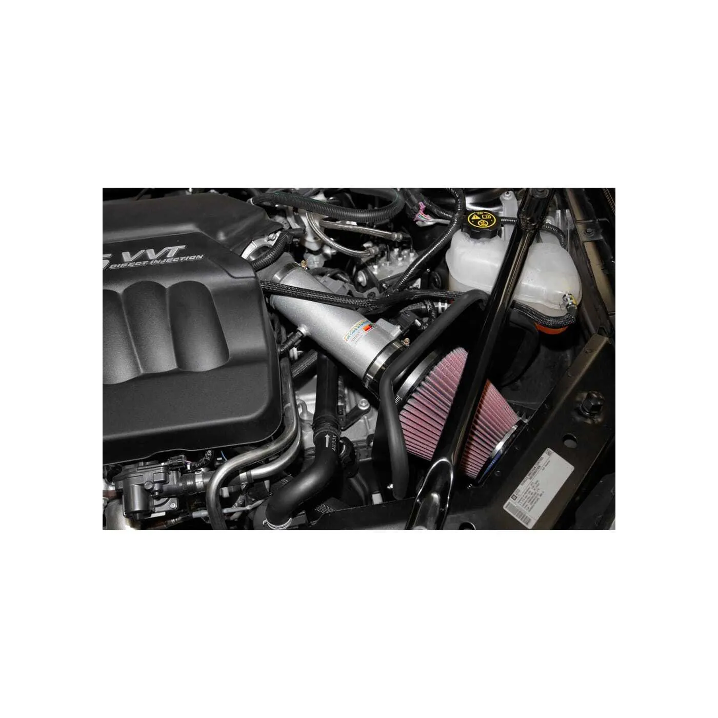 Gain a guaranteed increase in horsepower and torque with a K&N® cold air intake system featuring a mandrel-bent aluminum intake tube. Each system is paired with a washable, reusable High-Flow Air Filter™ featuring oiled cotton filter media. The oversized, conical filter design allows you to go up to 100,000 miles between filter services under normal highway driving conditions. A custom heat shield or air box helps protect intake air from the high temperature of your engine bay, and the entire system can typically be installed in less than 90 minutes. Some intakes are not legal for sale or use on any pollution controlled motor vehicle in California. See the product specifications for CARB status on each part for a specific vehicle.