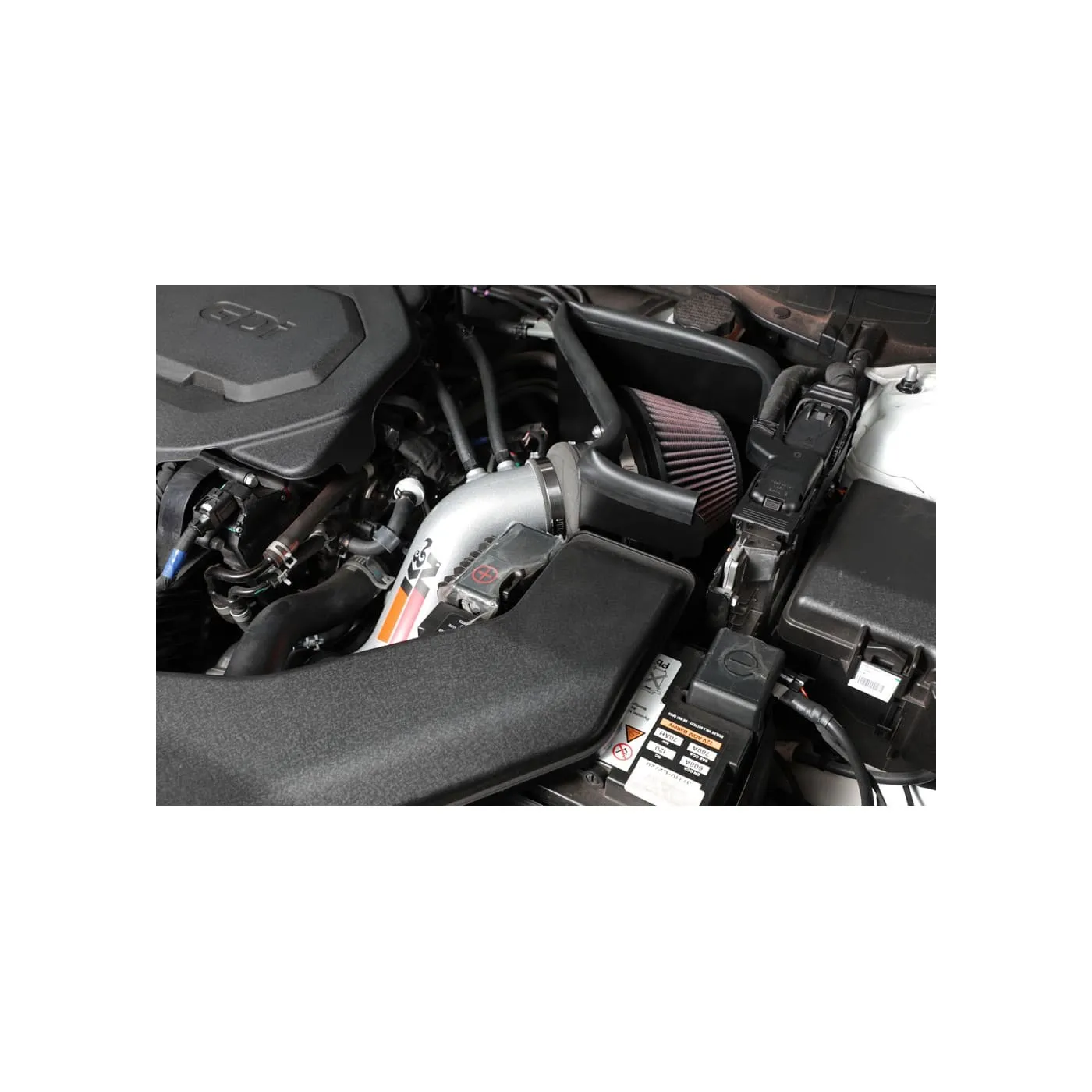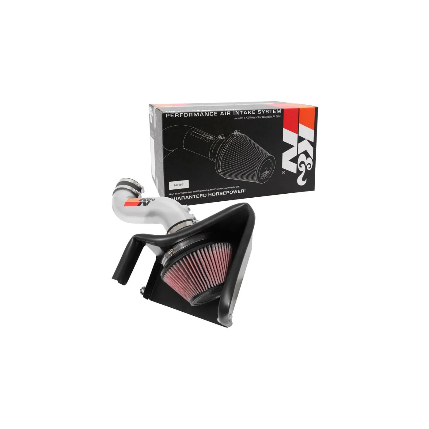 Gain a guaranteed increase in horsepower and torque with a K&N® cold air intake system featuring a mandrel-bent aluminum intake tube. Each system is paired with a washable, reusable High-Flow Air Filter™ featuring oiled cotton filter media. The oversized, conical filter design allows you to go up to 100,000 miles between filter services under normal highway driving conditions. A custom heat shield or air box helps protect intake air from the high temperature of your engine bay, and the entire system can typically be installed in less than 90 minutes. Some intakes are not legal for sale or use on any pollution controlled motor vehicle in California. See the product specifications for CARB status on each part for a specific vehicle.