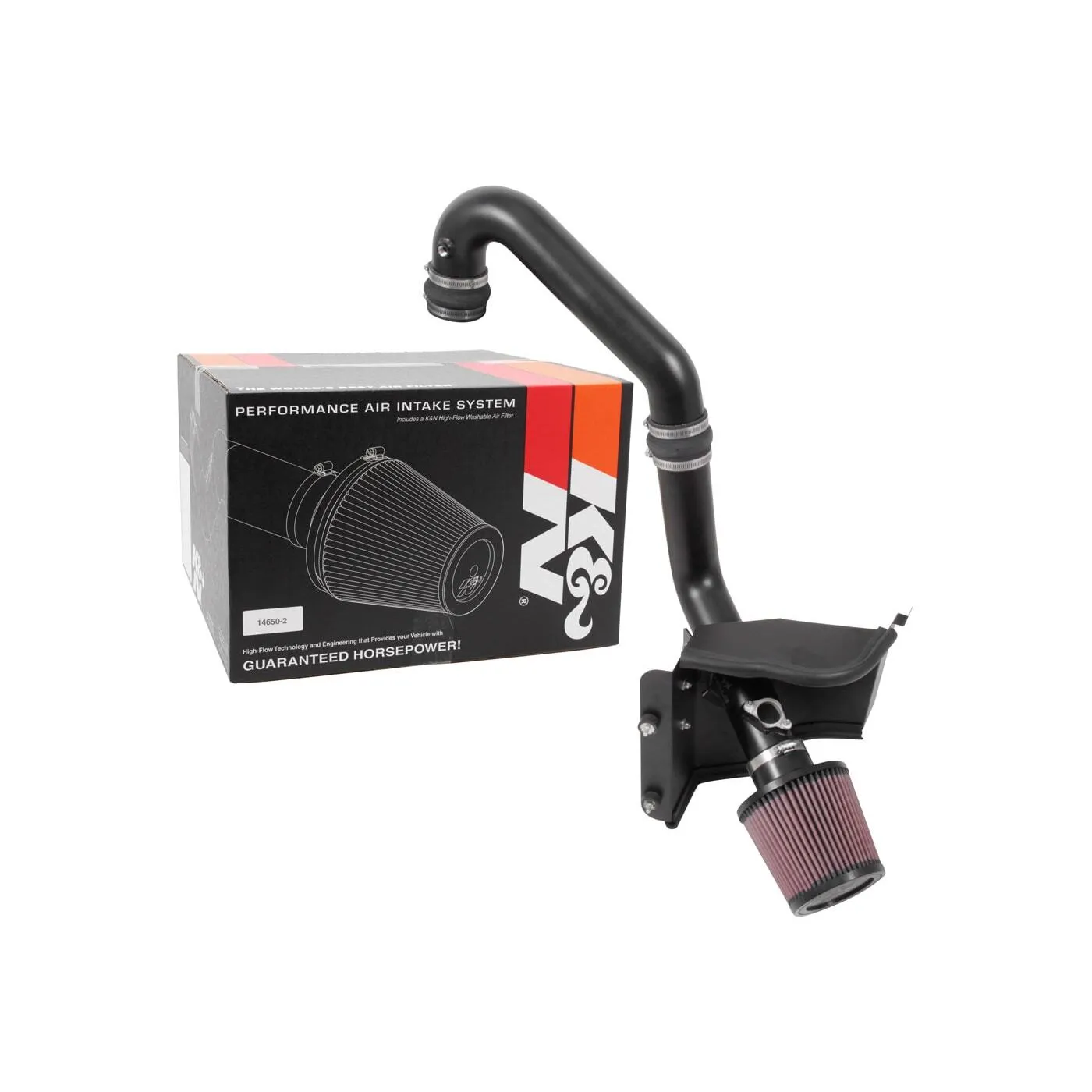 Gain a guaranteed increase in horsepower and torque with a K&N® cold air intake system featuring a mandrel-bent aluminum intake tube. Each system is paired with a washable, reusable High-Flow Air Filter™ featuring oiled cotton filter media. The oversized, conical filter design allows you to go up to 100,000 miles between filter services under normal highway driving conditions. A custom heat shield or air box helps protect intake air from the high temperature of your engine bay, and the entire system can typically be installed in less than 90 minutes. Some intakes are not legal for sale or use on any pollution controlled motor vehicle in California. See the product specifications for CARB status on each part for a specific vehicle.
