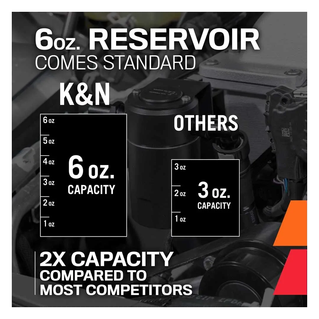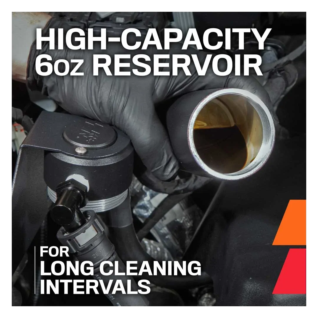 The K&N® Air Oil Separator protects the engine and intake tract from blowby by capturing the oil in our industry leading high capacity reservoir. This helps prevent power loss and possible engine damage caused by blowby. The K&N Air Oil Separator is quick and easy to install in about 30 minutes with basic tools and uses factory-style hose connections to quickly snap on and off. The oil separator replaces the factory line from the crank case allowing the oil separator to be mounted to a coinvent location in your engine bay. No tools are needed to check and empty the oil collector reservoir. Each unit is engineered specifically for your vehicle and is backed by our No-Hassle Lifetime Limited Warranty.