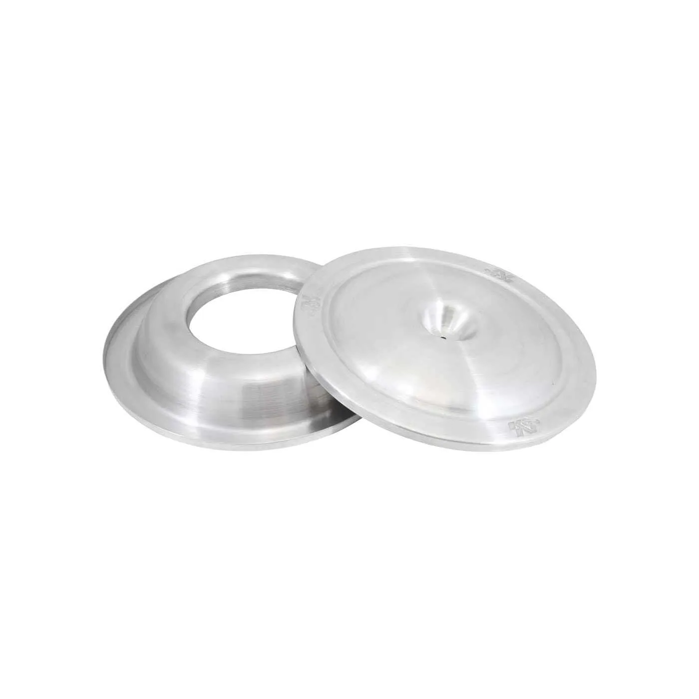 The oversized K&N 16 inch air filter top and base plates can be paired with a variety of 16 inch K&N air filters for boosting the performance in carbureted race cars. The plates are made from lightweight aluminum with a spun aluminum finish featuring K&N logos embossed on the outer edge of the top plate. The base plate fits carburetors with a 7-5/16 inch air horn flange and drops the filter 1-1/2 inches below the carb flange. The drop base design helps to maximize air filter height while still clearing the hood in many custom racing applications. These K&N 16 inch top and base plates will work with various heights of 16 inch diameter K&N high-flow air filters such as the 3 inch tall air filter E-3022R, 3-1/4 inch tall air filter E-3023R, 3-1/2 inch tall air filter E-3024R, 3-3/4 inch tall air filter E-3025R, 4 inch tall air filter E-3026R and several other variations meant for off-road racing use.