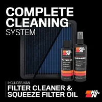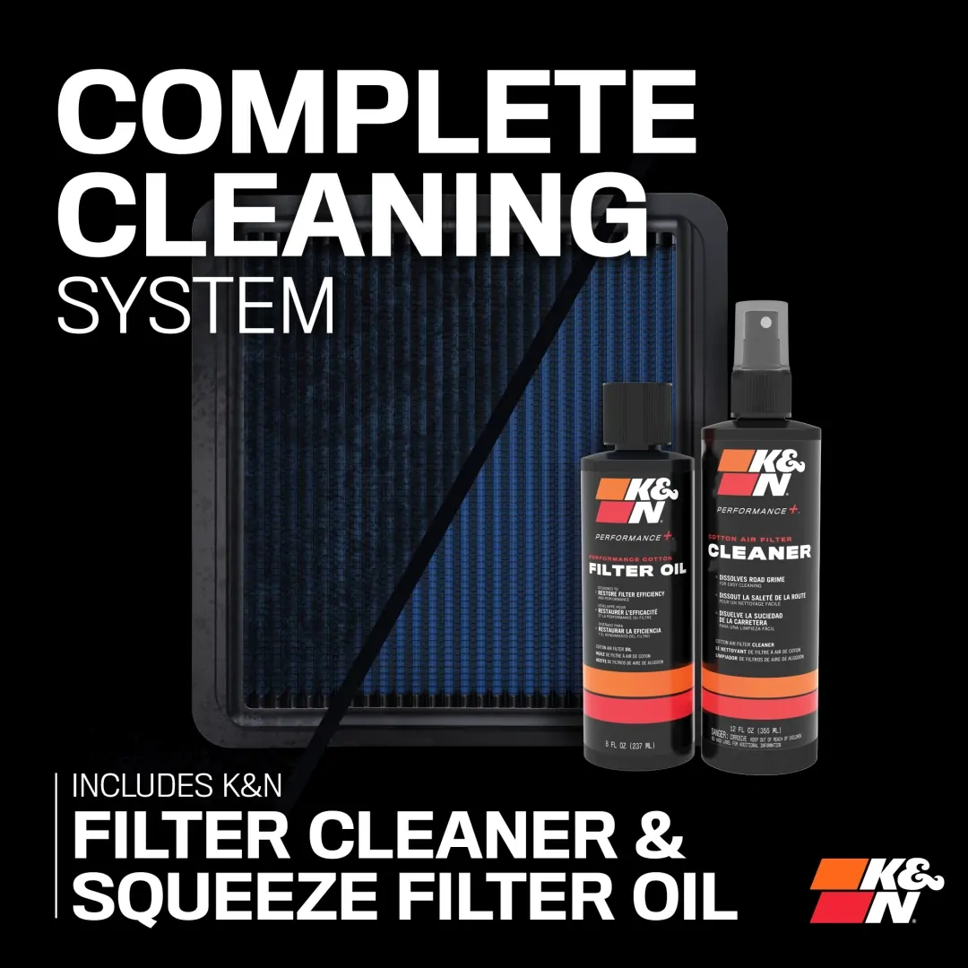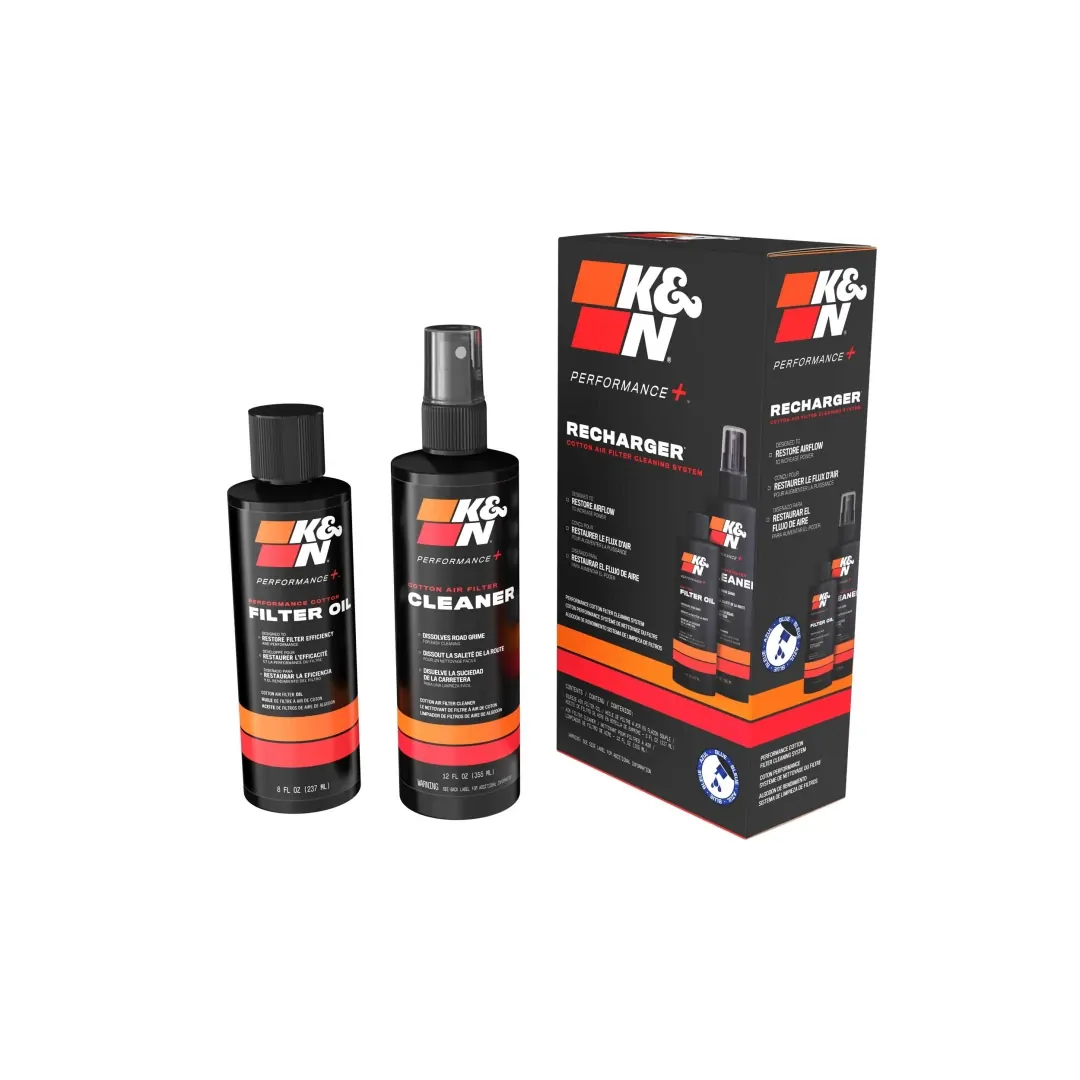K&N Recharger Kit 99-5050BL is designed for cleaning your K&N oiled cotton air filter when it is time to be serviced. The kit comes with K&N Power Kleen air filter cleaner and K&N air filter oil. 99-5050BL will restore air flow efficiency and will bring your K&N oiled cotton air filter to like new condition. K&N Power Kleen works to dissolve the dirt build up and old filter oil, then it can be washed away with water. After the air filter fully dries re-oil your air filter then reinstall it. This Recharger Kit comes with an 8 ounce squeeze bottle of oil and a 12 ounce K&N pump bottle of Power Kleen air filter cleaner.