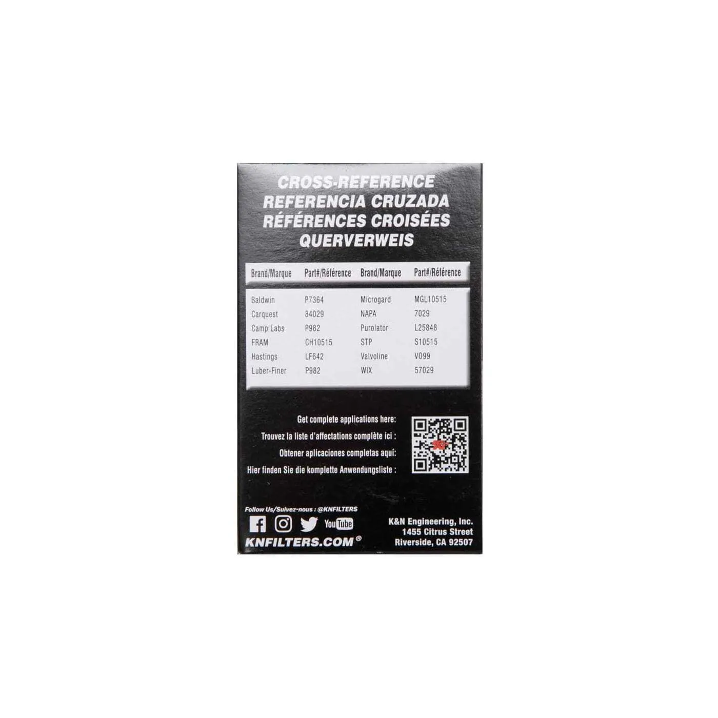 K&N Cartridge Oil Filters are designed to satisfy the needs of racers and engine builders as well as the average vehicle owner who wants the best oil filter available. K&N cartridge oil filters trap harmful contaminants while the filter's construction allows for high oil flow rates. All K&N oil filters are manufactured to meet stringent engineering standards. They are covered by a limited warranty to be free from defects in materials and workmanship when installed and replaced using engine and equipment manufacturer's recommended service intervals.