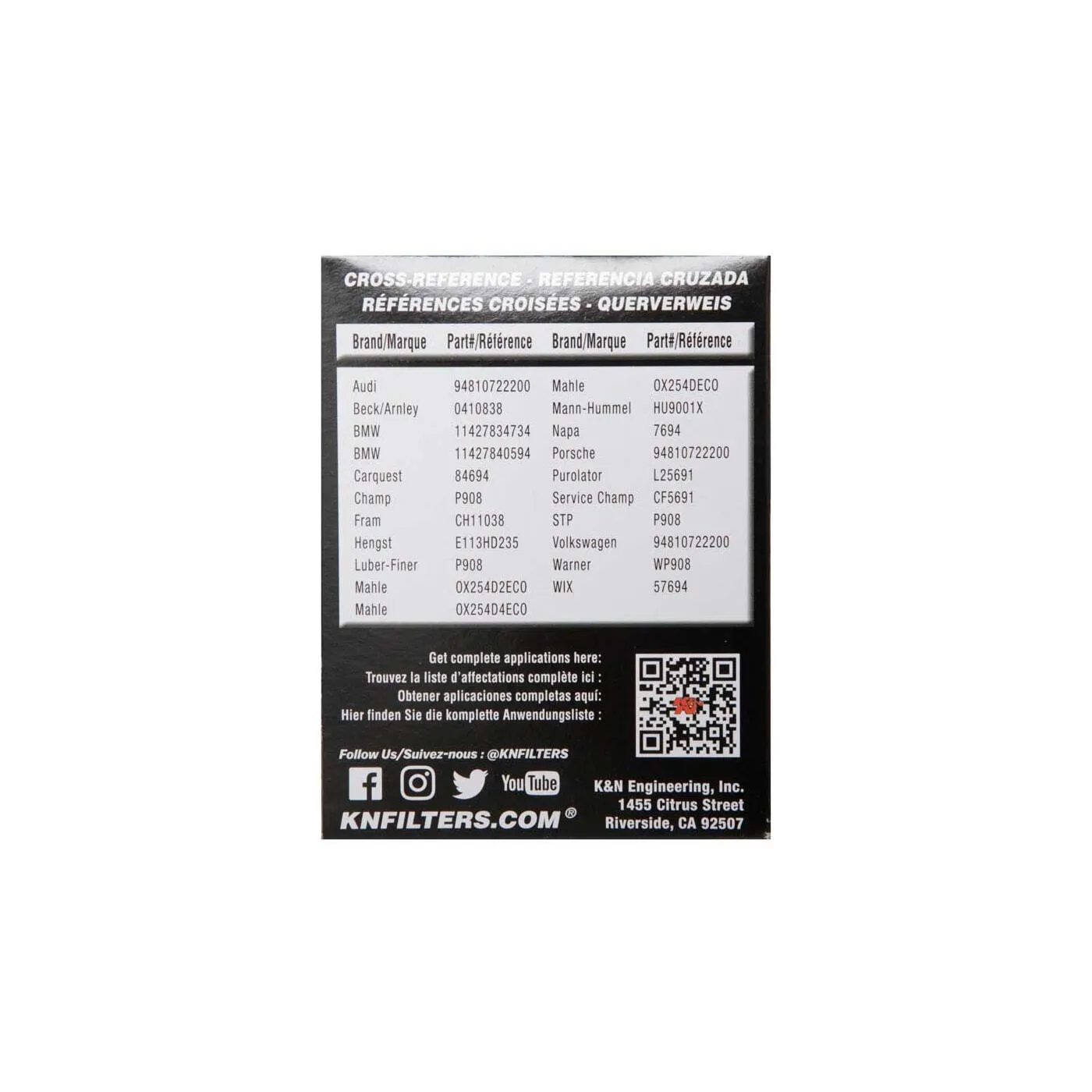 K&N Cartridge Oil Filters are designed to satisfy the needs of racers and engine builders as well as the average vehicle owner who wants the best oil filter available. K&N cartridge oil filters trap harmful contaminants while the filter's construction allows for high oil flow rates. All K&N oil filters are manufactured to meet stringent engineering standards. They are covered by a limited warranty to be free from defects in materials and workmanship when installed and replaced using engine and equipment manufacturer's recommended service intervals.