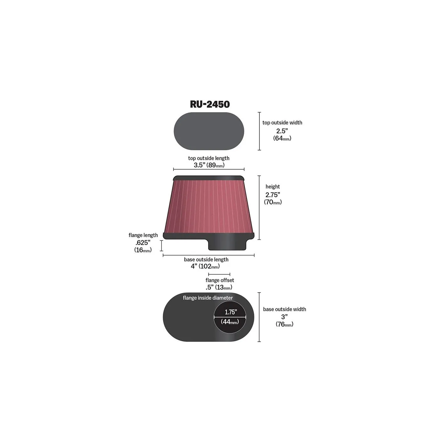 K&N's Universal Air Filters are designed and manufactured for a wide variety of applications including racing vehicles, radio-controlled cars, generators, snowmobiles, tractors, and other applications. Regardless of the angle or offset diameter of the air intake, there is probably a K&N Universal air filter for your equipment. All filters are constructed with ultra-strong molded pliable rubber flanges which absorb vibration and allow for secure attachment and can also be stretched for up to 1/16 of an inch (1.5mm) to fit in-between sizes. K&N universal air filters are washable and reusable.