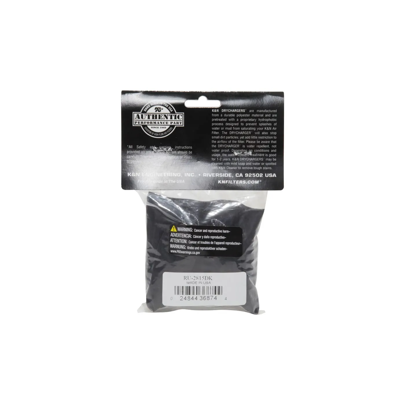 The K&N Drycharger® is a silicone treated, polyester wrap that is made to cover K&N Air Filters or Personal Watercraft Flame Arrestors. These Drychargers, which are similar to the K&N Prechargers, contain uniform micron sized openings that allow high air flow. Yet, due to the Drychargers silicone treated polyester wrap, the amount of water that reaches the air filter or flame arrestor is limited.