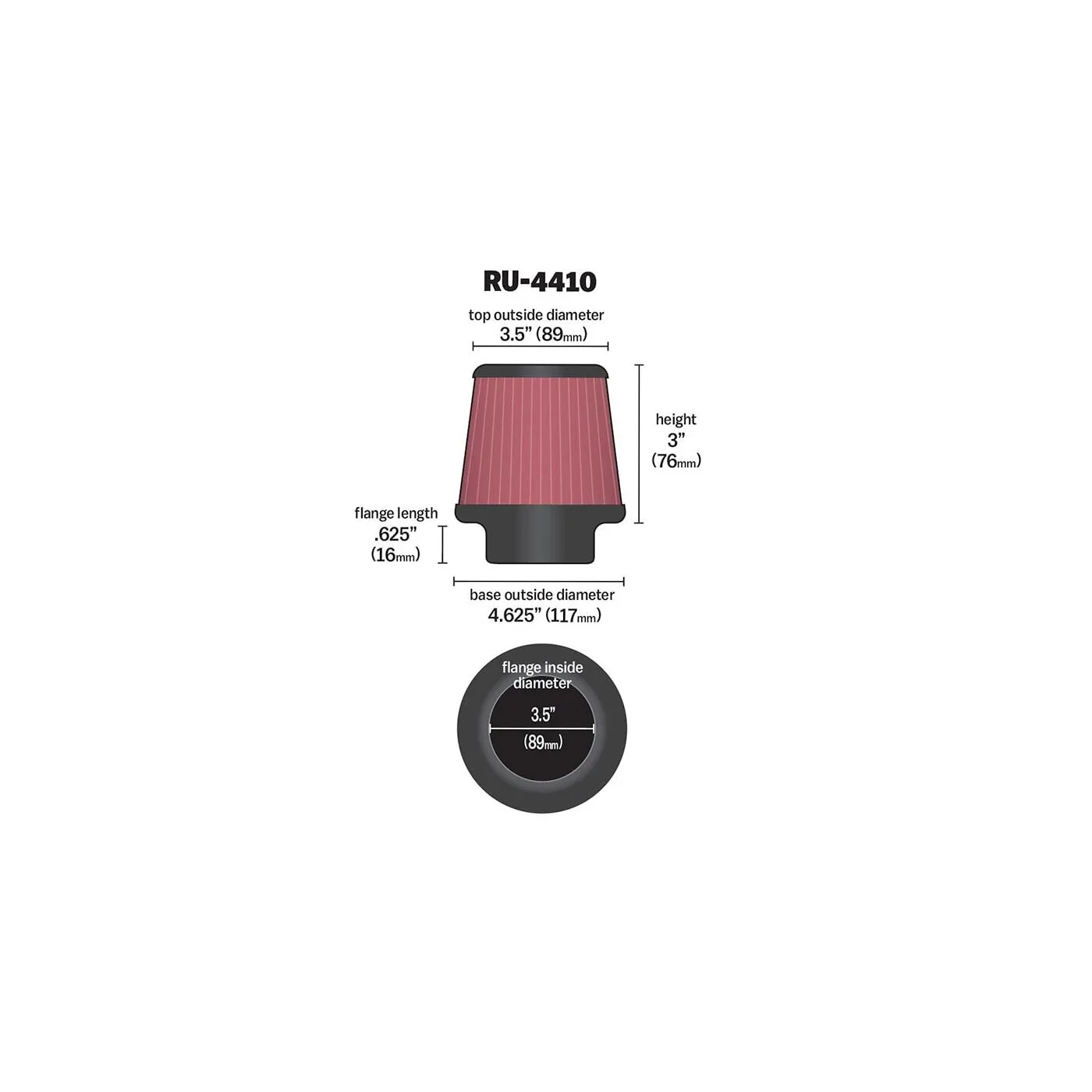 • Air Filter Large End Diameter : 4.625 in (117 mm)