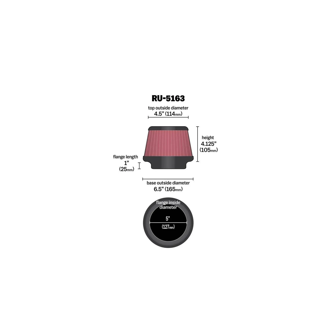 • Air Filter Large End Diameter : 6.5 in (165 mm)