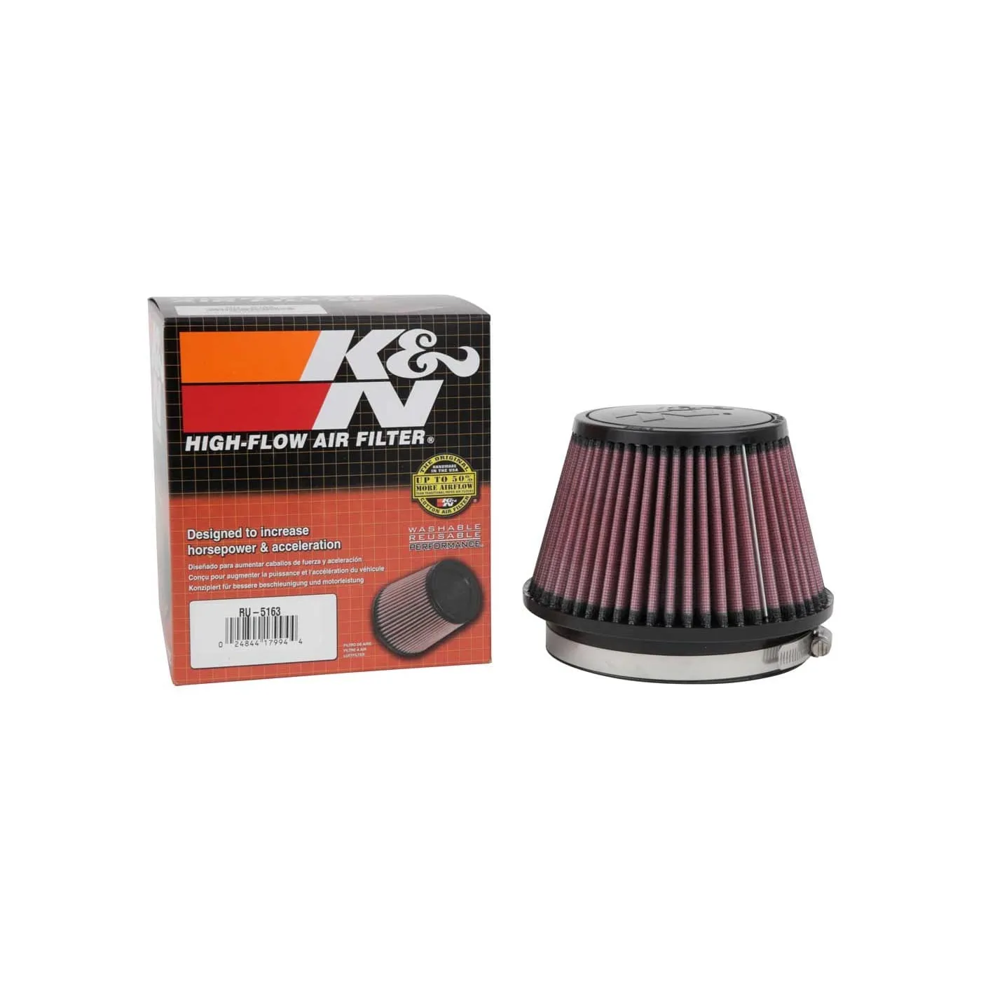 K&N's Universal Air Filters are designed and manufactured for a wide variety of applications including racing vehicles, radio-controlled cars, generators, snowmobiles, tractors, and other applications. Regardless of the angle or offset diameter of the air intake, there is probably a K&N Universal air filter for your equipment. All filters are constructed with ultra-strong molded pliable rubber flanges which absorb vibration and allow for secure attachment and can also be stretched for up to 1/16 of an inch (1.5mm) to fit in-between sizes. K&N universal air filters are washable and reusable.