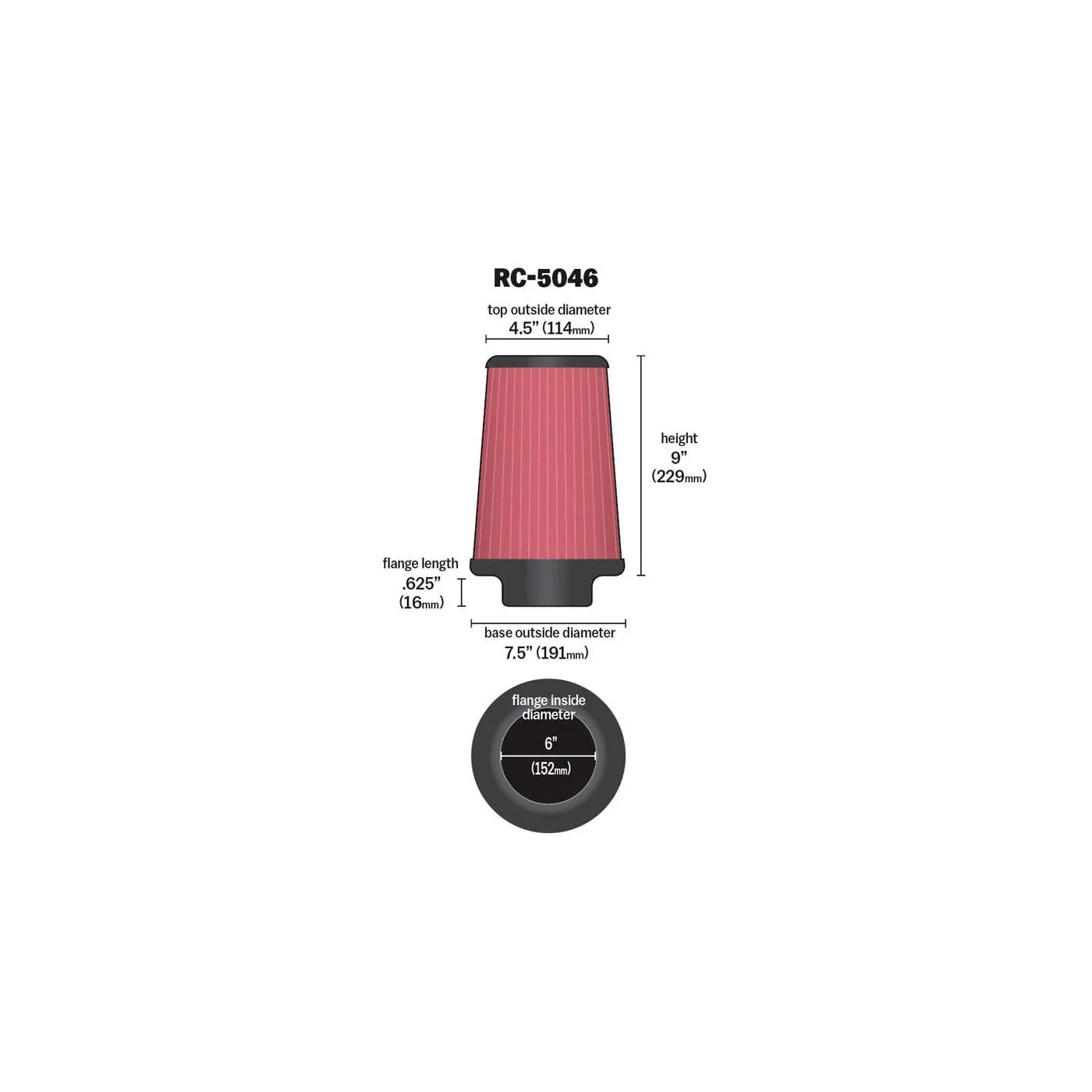 • Air Filter Large End Diameter : 7.5 in (191 mm)