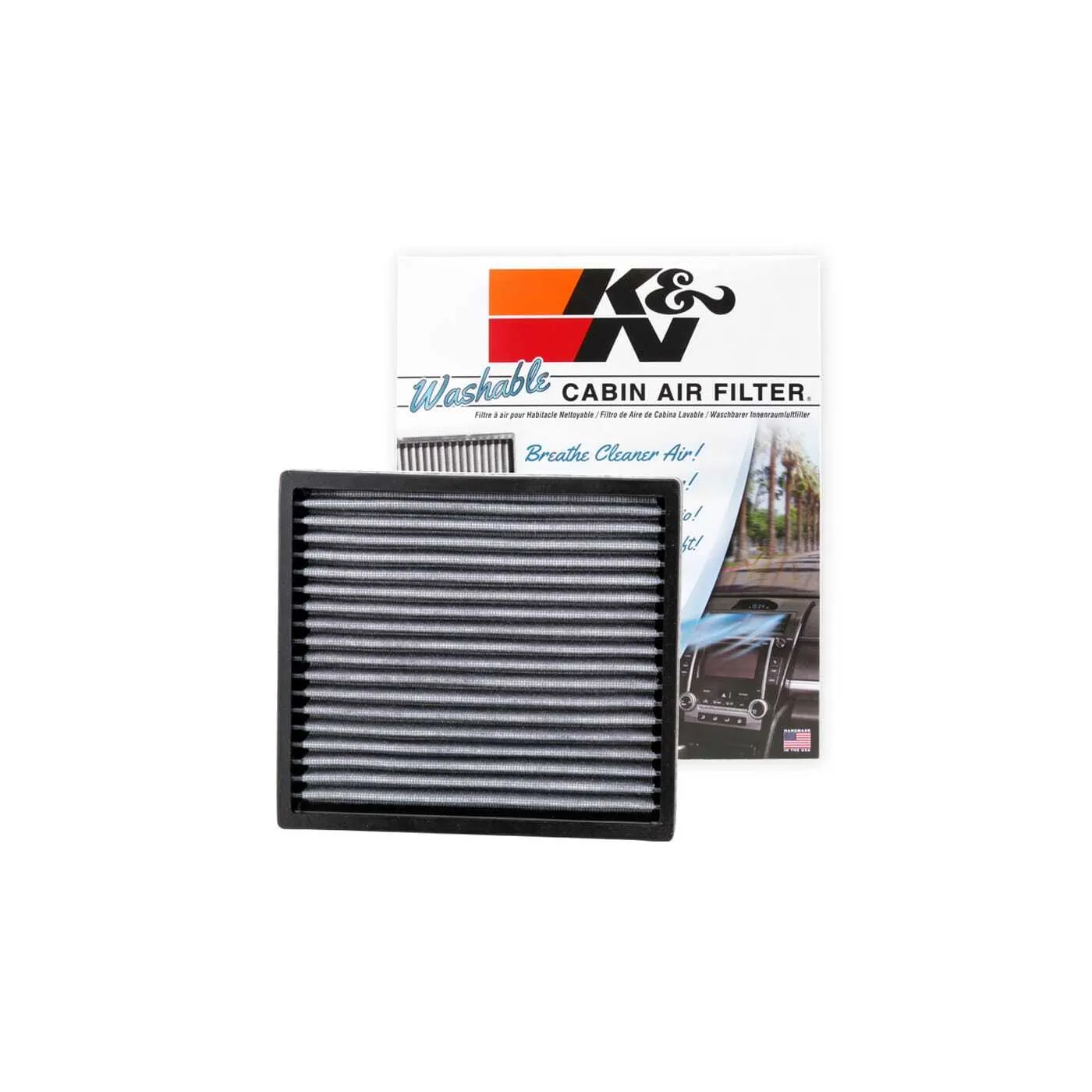 K&N® washable cabin air filters are engineered to fit directly into your factory air box, offering excellent protection from environmental contaminants and odor-causing particles. The thermally bonded high-flow synthetic material acts as a physical barrier, helping trap dust, pollen, mold, bacteria, fungi, and other pollutants, and is specially pleated to increase the contaminant-capturing surface area. Each filter is engineered to install easily into your factory cabin air box, and is designed to be easily washed and reinstalled whenever necessary. Buy with confidence under the K&N® 10-Year/Million Mile Limited Warranty™.