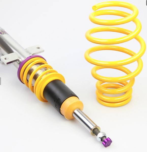 You have 16 clicks of adjustments with a KW coilover Variant 2 "inox-line". The rebound adjustment changes the driving dynamics if the change the complete wheel set or install a set of winter tires. You can adjust the damping characteristics of the weather-resistant KW coilover 2 "inox-line" to be firmer or more comfortable, according to your own needs. The suspension is suitable for all competitive drivers who want more than just continous lowering for their driving pleasure.