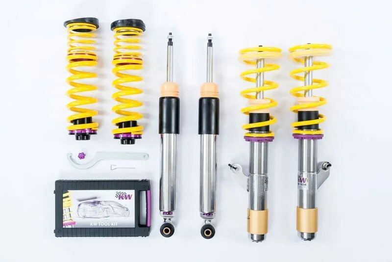 If you have already made your first performance modifications to your vehicle our KW coilovers Variant 3 will compliment your upgrades. The patented KW-valve technology for separate adjustment of rebound and compression damping allows you to individually setup your suspension.The adjustable KW bottom valve adjusts the low-speed range of the compression level in twelve clicks.