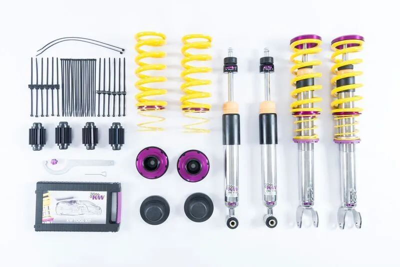 Similar to our racing coilovers from the KW Competition program, the KW coilovers Variant 3 inox-line can be adjusted independently in compression and rebound damping. This individual adjustment possibility is much appreciated by sports car manufacturers, tuners and drivers worldwide.