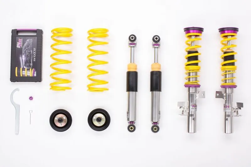 If you have already made your first performance modifications to your vehicle our KW coilovers Variant 3 will compliment your upgrades. The patented KW-valve technology for separate adjustment of rebound and compression damping allows you to individually setup your suspension.The adjustable KW bottom valve adjusts the low-speed range of the compression level in twelve clicks.