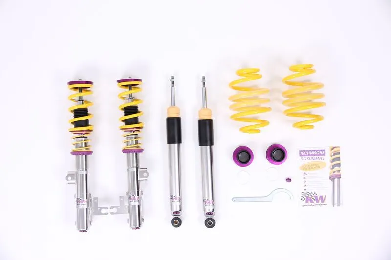 The KW coilover kit Variant 3 inox-line is the perfect accessory for performance-oriented drivers and tuning enthusiasts who put a great demand on their suspension. The separately rebound and compression damping adjustable dampers with their well-thought-through click adjustment allow a perfect setup. So it is easy to influence the steering behaviour, directional stability, tire grip and handling characteristics when driving on the limit.