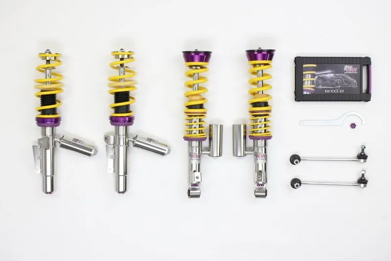 If you have already made your first performance modifications to your vehicle our KW coilovers Variant 3 will compliment your upgrades. The patented KW-valve technology for separate adjustment of rebound and compression damping allows you to individually setup your suspension.The adjustable KW bottom valve adjusts the low-speed range of the compression level in twelve clicks.