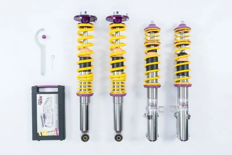 If you have already made your first performance modifications to your vehicle our KW coilovers Variant 3 will compliment your upgrades. The patented KW-valve technology for separate adjustment of rebound and compression damping allows you to individually setup your suspension.The adjustable KW bottom valve adjusts the low-speed range of the compression level in twelve clicks.