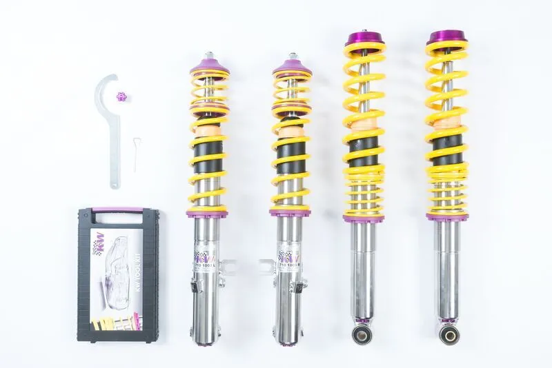 If you have already made your first performance modifications to your vehicle our KW coilovers Variant 3 will compliment your upgrades. The patented KW-valve technology for separate adjustment of rebound and compression damping allows you to individually setup your suspension.The adjustable KW bottom valve adjusts the low-speed range of the compression level in twelve clicks.